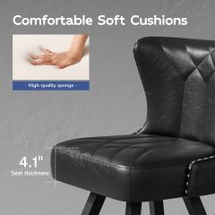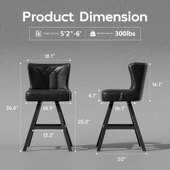 iooHug 25″ Black Counter Height Bar Stools Set of 4, Swivel Bar Stools with Backs, PU Leather Upholstered Counter Height Chairs with Metal Legs, Mid-Century Rivet Trim Bar Chairs for Kitchen Island