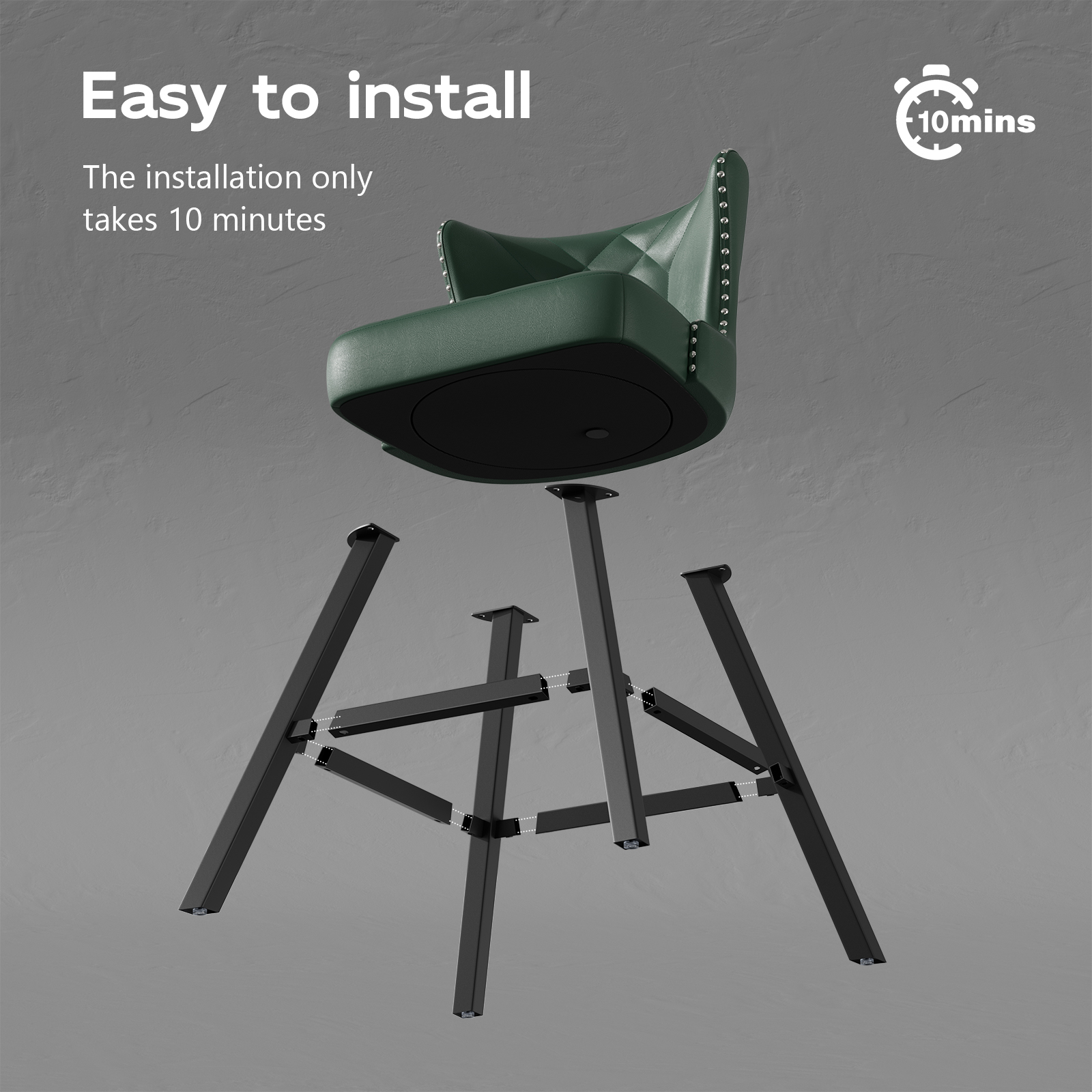25” counter height bar stool with a 4.1” thick high-density cushion and ergonomic backrest for long-lasting comfort. Waterproof PU leather with retro rivet trim adds style and easy cleaning. Sturdy metal frame supports up to 300 lbs with anti-slip foot pads for stability.