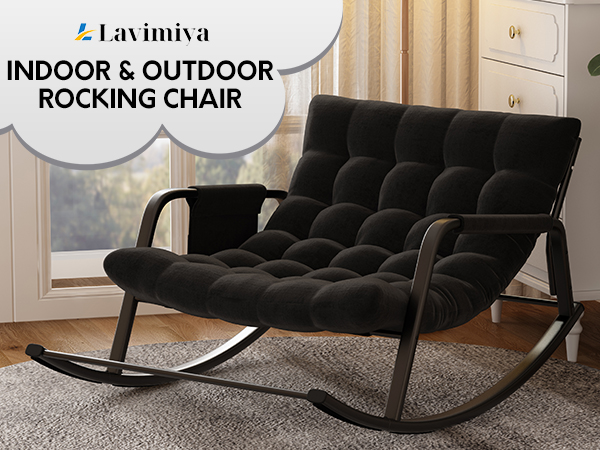 iooHug Grand patio Outdoor Rocking Chair, Oversized Papasan Rocking Chair 400 lbs, Modern Cozy Lounge Rocker Chair with Cushion for Balcony Porch, Patio, Living Room, Bedroom, Garden, Black