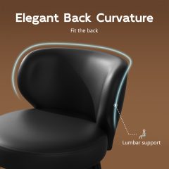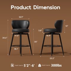 360° Swivel Counter Height Bar Stools, perfect for kitchen islands/home bars, with smooth full rotation for easy movement and conversation. Upholstered in waterproof, durable, easy-clean high-quality PU leather, the padded round seat ensures comfort. Ergonomic low curved back supports the waist for lasting ease. Reinforced metal frame + 360° footrest ring deliver great stability, 300 lbs weight capacity per stool.