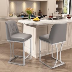 iooHug Set of 2 Gray Bar Stools, 24″ Counter Height Bar Stools, PU Leather Kitchen Island Stools with Back and Gold Footrest, Modern Bar Chairs for Dining Room or Home Bar