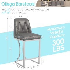 These 24-inch counter bar stools feature premium PU leather, high-density foam, sturdy black metal frame & non-slip foot pads. 2.6″ thick cushion & built-in footrest for lasting comfort. Support up to 300 lbs, stable for daily use. Modern stylish design fits 34″–38″ counters, home bars & dining areas. Easy assembly with all tools included.