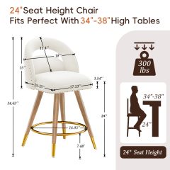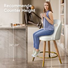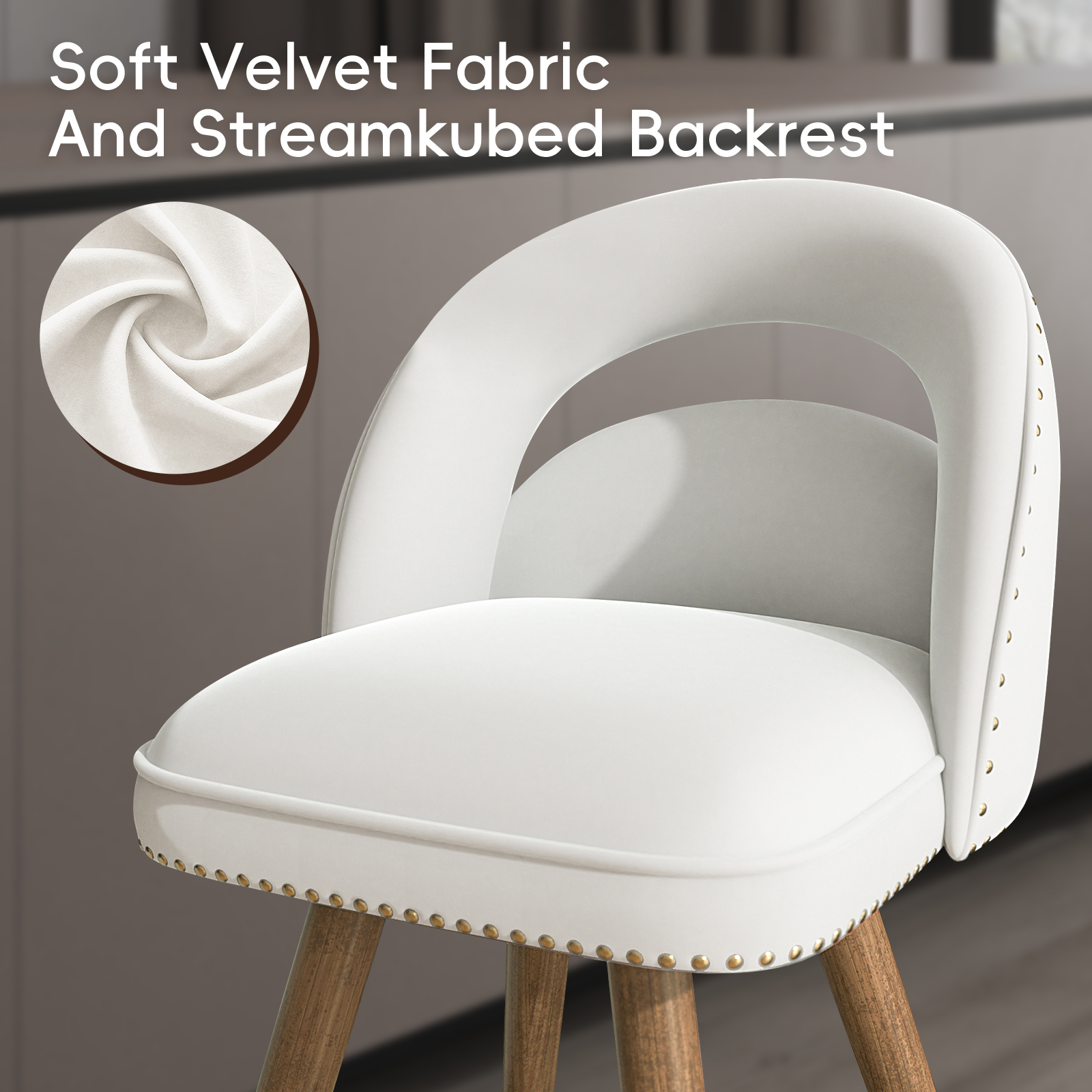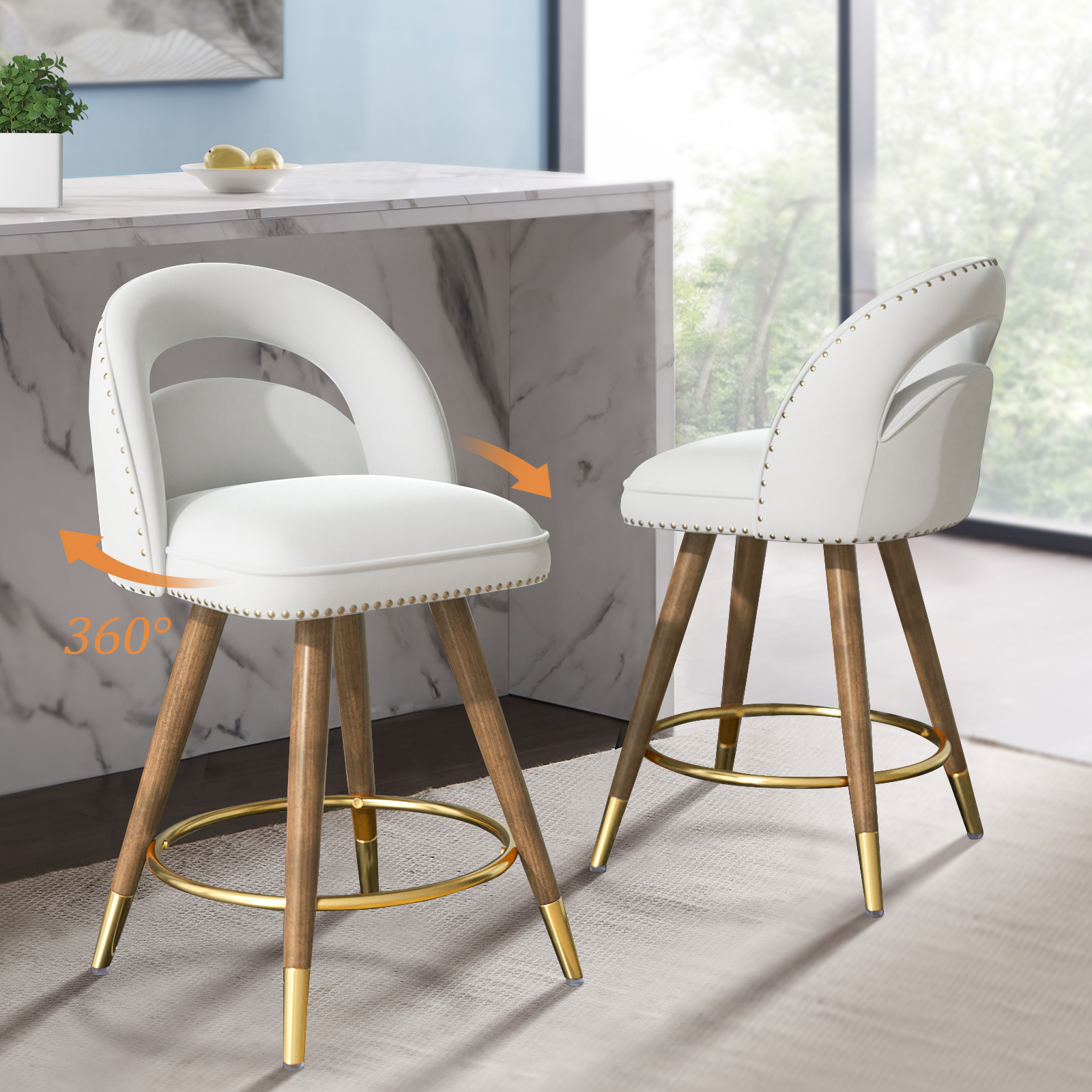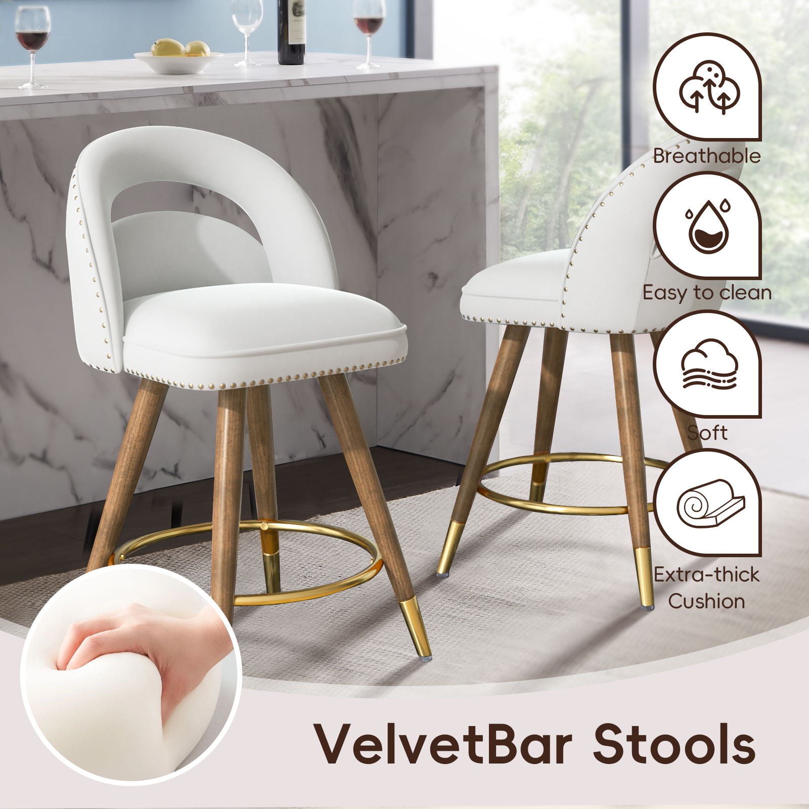 iooHug 360 Swivel Bar Stools Set of 2, 24 Inch Counter Height Bar Chairs with Backs, Velvet Upholstered Kitchen Island Stools, Solid Wood Legs, 300 LBS, White