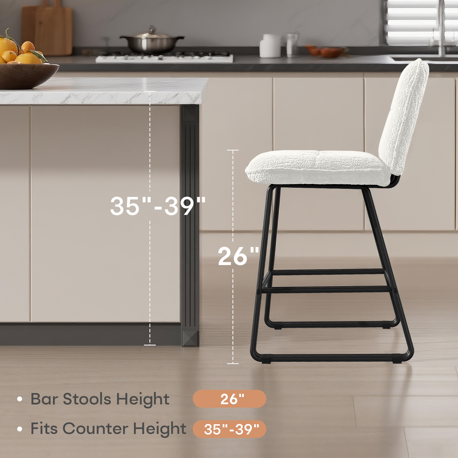 iooHug 26″ Velvet Counter Height Bar Stools Set of 2, Modern Upholstered Bar Chairs with Metal Legs and Footrest for Kitchen Island, Dining Room, Home Bar, White