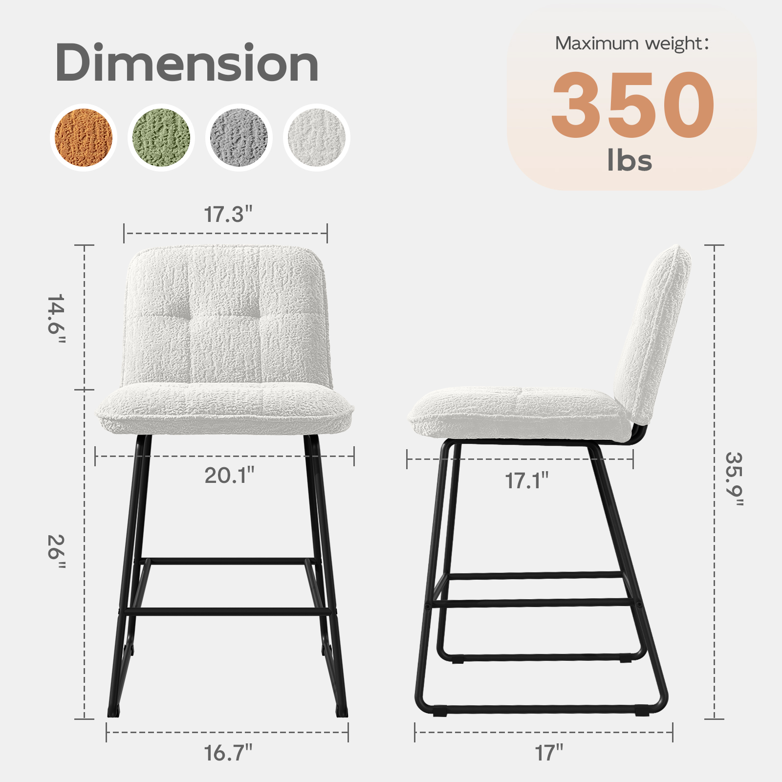 Set of 4 velvet counter bar stools with ergonomic contoured backrests and high-density cushions. Sturdy powder-coated steel frame supports 330 lbs, equipped with footrests and anti-slip pads. Premium skin-friendly velvet delivers plush comfort, modern versatile style, easy assembly, ideal for home and commercial spaces.