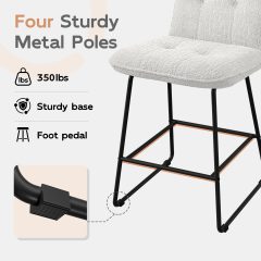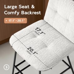iooHug 26″ Velvet Counter Height Bar Stools Set of 4, Modern Upholstered Bar Chairs with Metal Legs and Footrest for Kitchen Island, Dining Room, Home Bar, White