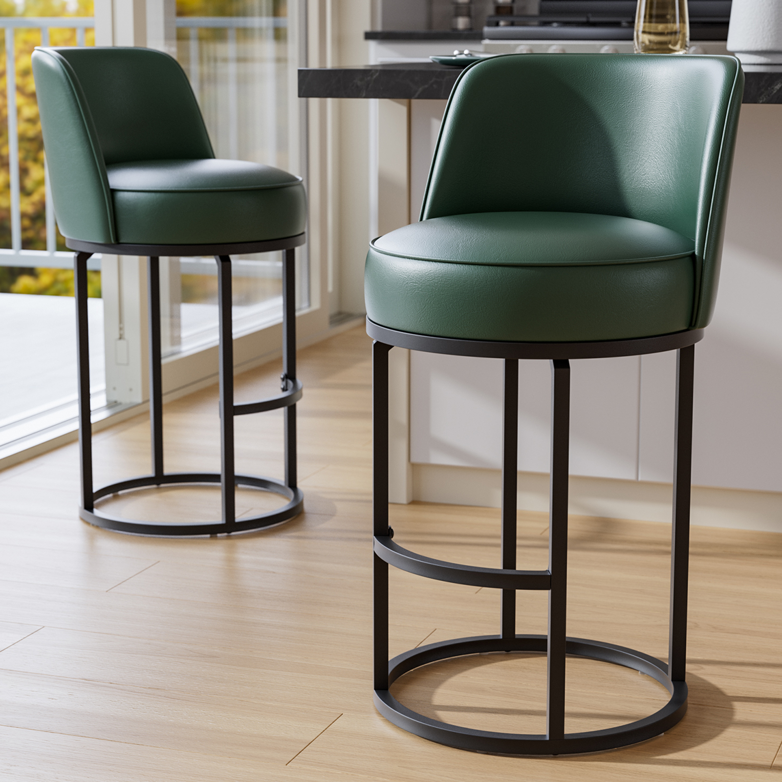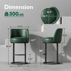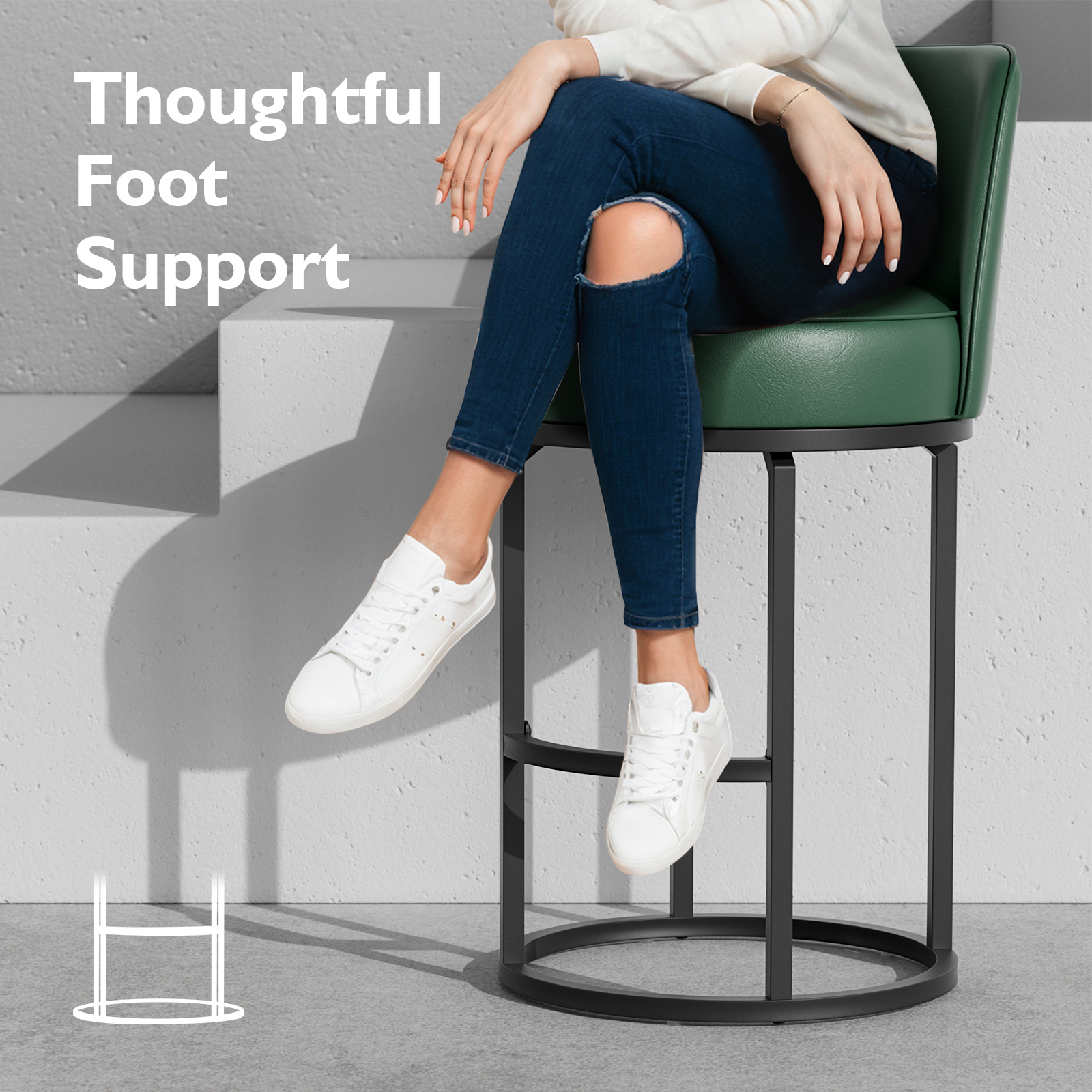 26″Counter Height Bar Stools fit 35″–39″ kitchen counters/islands, with built-in footrest for comfy leg support, ideal for daily use. 360° smooth silent swivel base enables easy turning for dining, chatting and reaching, perfect for kitchen/breakfast bars, home bars. Premium soft PU leather upholstery, padded seat and ergonomic backrest offer easy cleaning, lasting comfort and reliable lumbar support for long sitting.