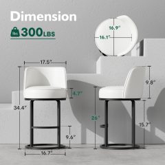 26″Counter Height Bar Stools fit 35″–39″ kitchen counters/islands, with built-in footrest for comfy leg support, ideal for daily use. 360° smooth silent swivel base enables easy turning for dining, chatting and reaching, perfect for kitchen/breakfast bars, home bars. Premium soft PU leather upholstery, padded seat and ergonomic backrest offer easy cleaning, lasting comfort and reliable lumbar support for long sitting.