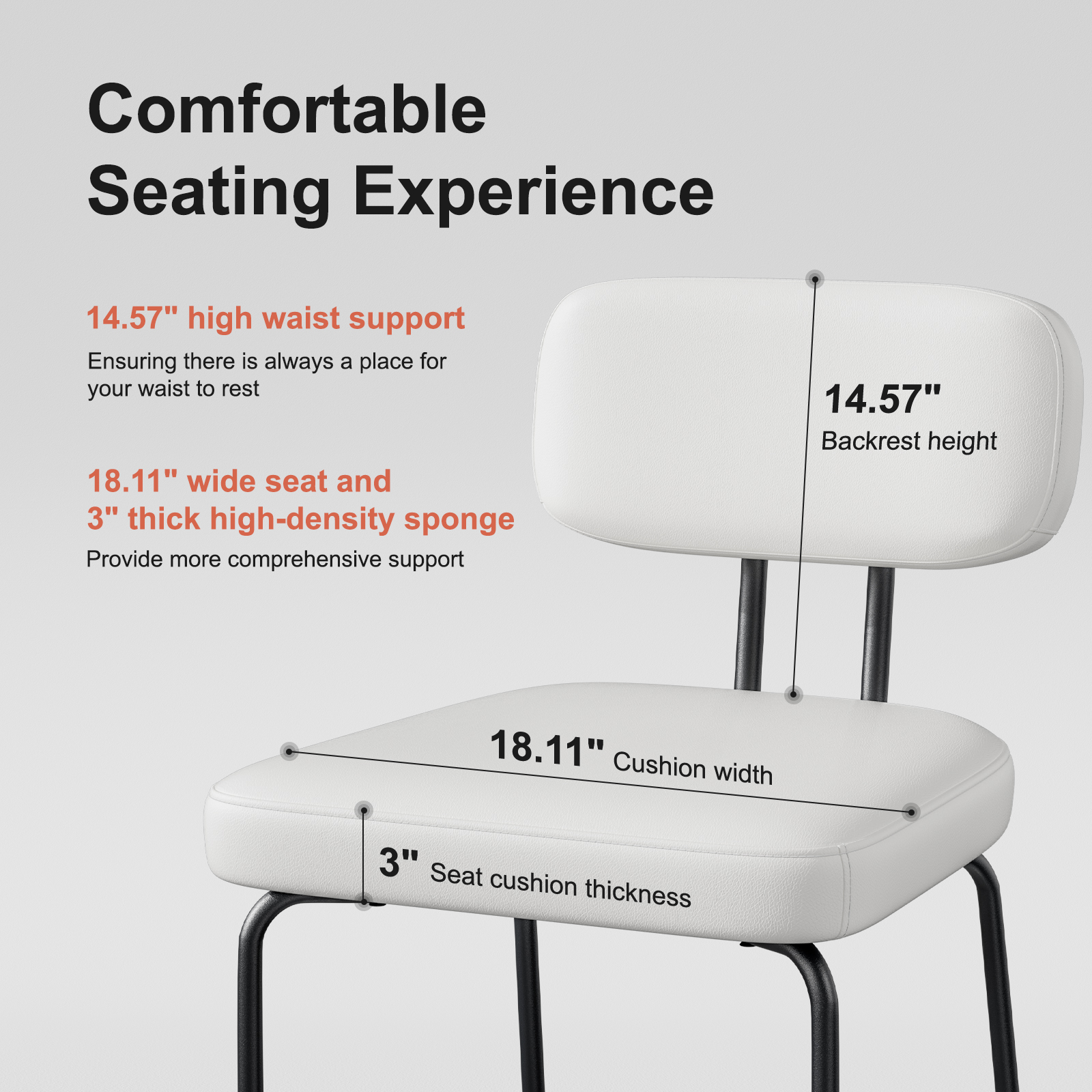iooHug 26″ Fabric Bar Stools with Backs, Set of 3 Counter Height Bar Stools, Wide Seat Kitchen Island Chairs with Metal Legs for Kitchen Island/Dining Room/Bar, White