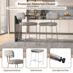 iooHug 26″” Fabric Bar Stools with Backs, Set of 4 Counter Height Bar Stools, Wide Seat Kitchen Island Chairs with Metal Legs for Kitchen Island/Dining Room/Bar, Grey