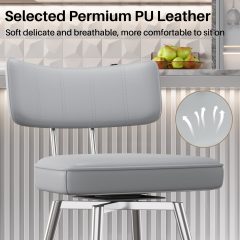 iooHug 24″ Swivel Counter Height Bar Stools, Set of 4 PU Leather Bar Stool with Metal Legs and Footrest for for Kitchen Island or Home Bar, Gray