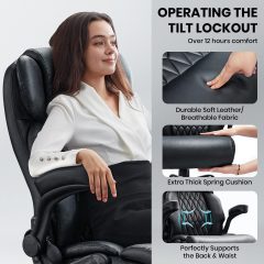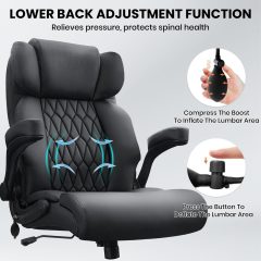 This big & tall executive chair features adjustable inflatable lumbar support, height adjustment and padded armrests for all-day comfort. Supporting up to 500 lbs, it has thick cushions and full-body ergonomic support. Silent PU casters protect floors, while a sturdy metal frame, SGS-certified gas lift and durable upholstery ensure safety and long-lasting use.