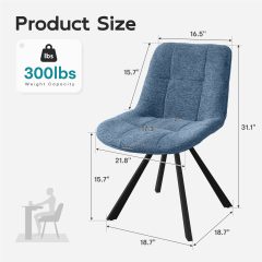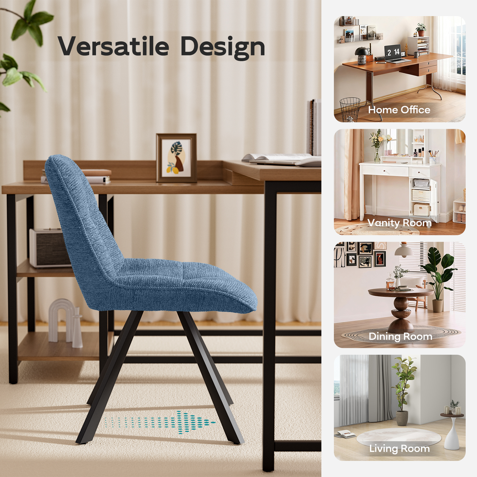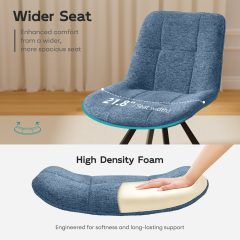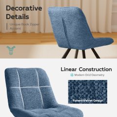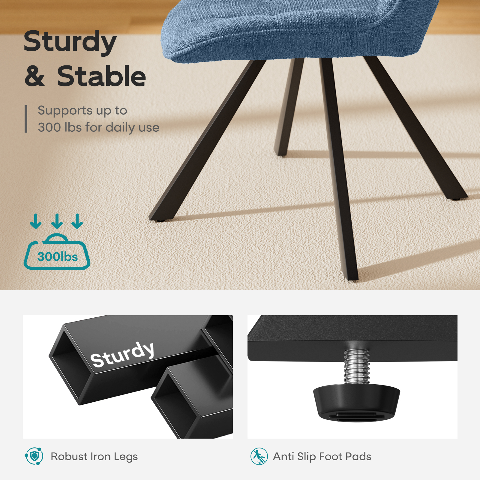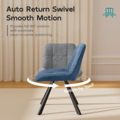 iooHug Set of 2 Modern Velvet Swivel Accent Chair with 180° Auto Return, Vanity Chair with Back Support, Armless Desk Chair No Wheels, Upholstered Living Room Chair with Metal Legs, 300 lbs, Blue
