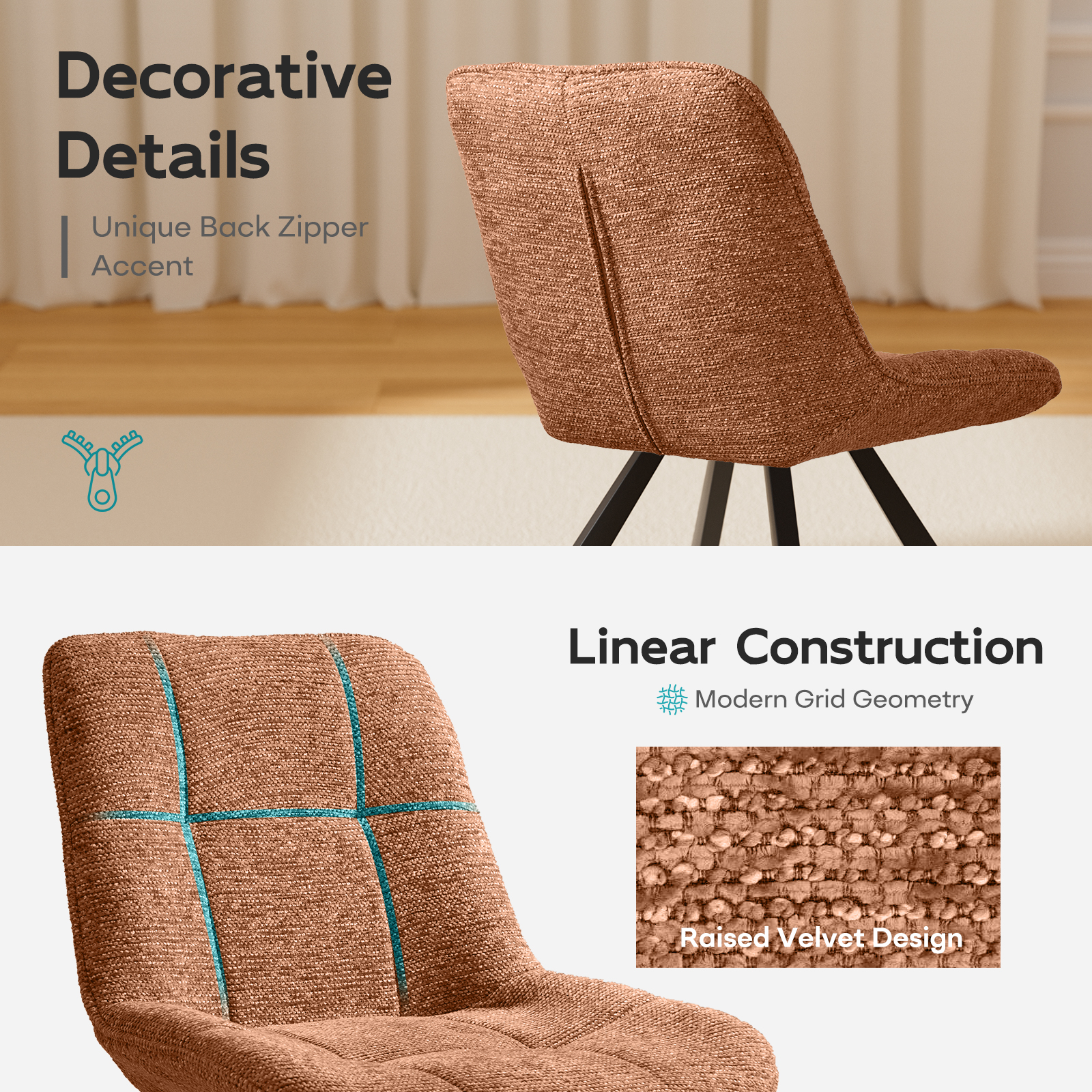 This modern velvet swivel chair boasts a 180° auto-return function and ergonomic backrest for superior comfort. Sturdy metal legs with non-slip pads support up to 300 lbs, while its stylish grid design adds elegance to any space. Simple 3-step assembly, ideal for vanities, bedrooms and living areas.
