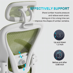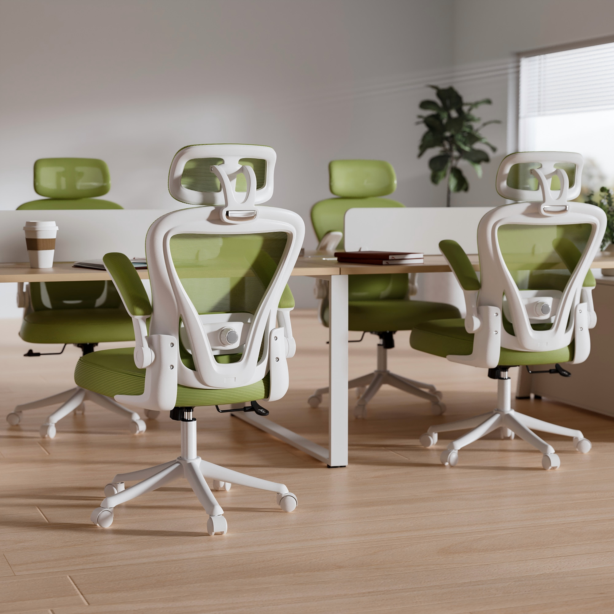 iooHug Ergonomic Mesh Office Chair with Adjustable Lumbar Support, Computer Desk Chair with Headrest, Flip-Up Arms, Green