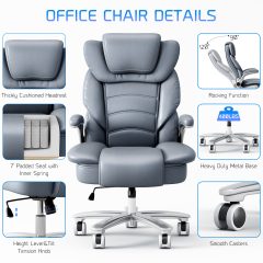 iooHug Big and Tall Office Chair 400lbs, Ergonomic Desk Chair with Lumbar Support, Flip-Up Arms, Faux Leather High Back Computer Chair for Home Office, Blue+Grey