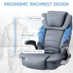 iooHug Big & Tall Faux Leather Executive Office Chair features durable, easy-clean faux leather upholstery with high-density sponge padding for a premium finish. Segmented cushioning, adjustable lumbar support and a high backrest deliver all-day ergonomic comfort for home/work. Flip-up padded armrests save space and enable flexible sitting. Reinforced metal frame + 360° swivel casters ensure stability, supporting up to 400 lbs durably.