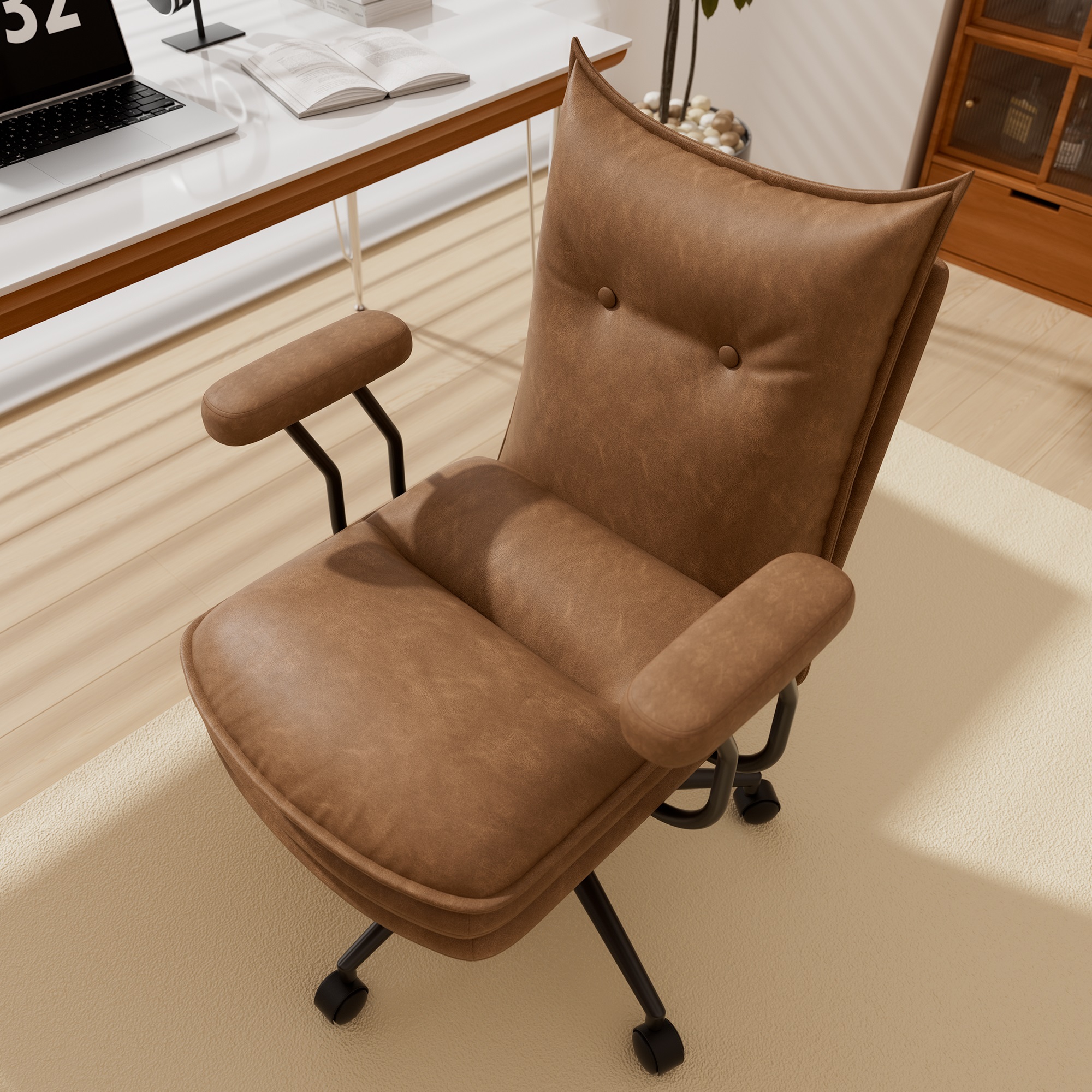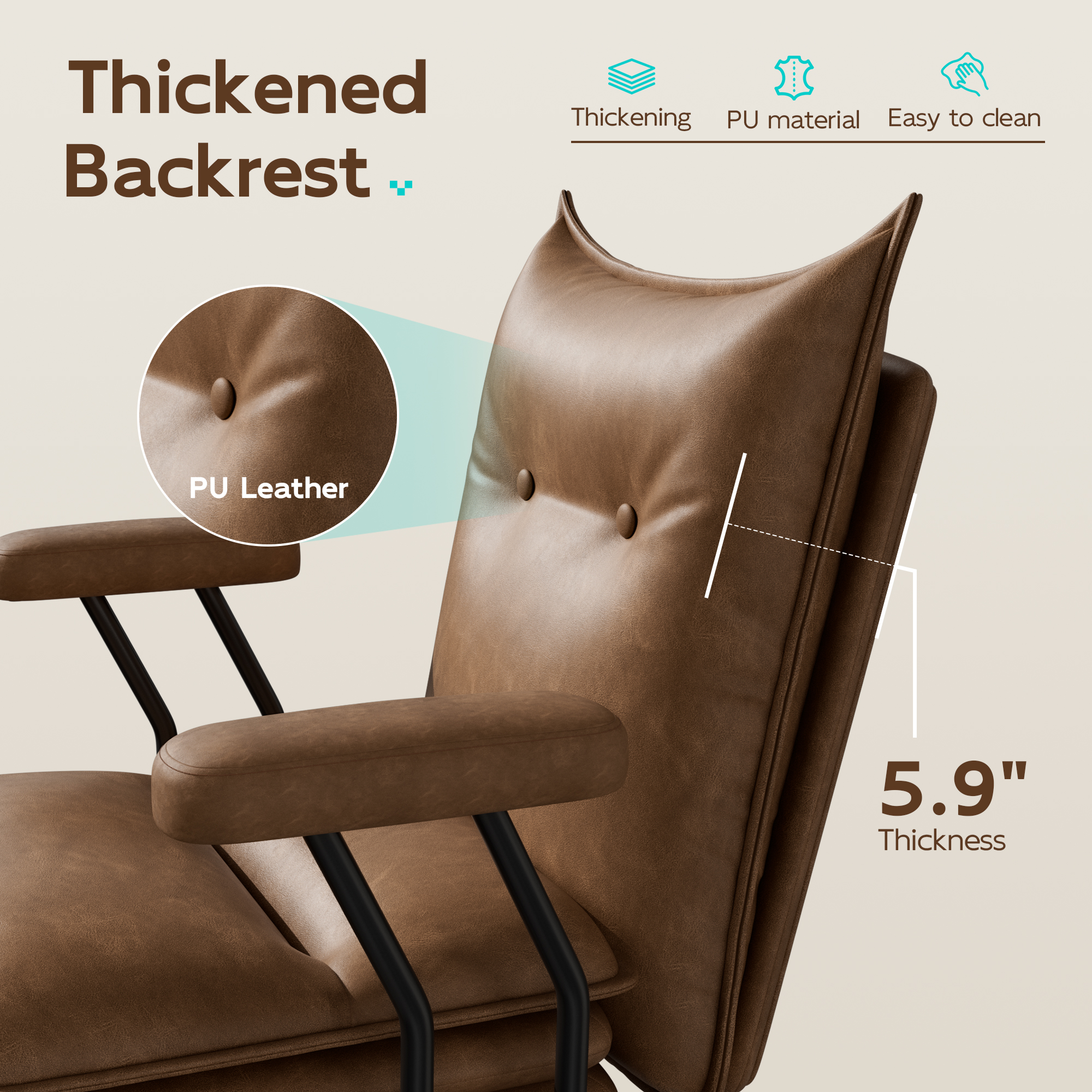 “iooHug Ergonomic Brown Office Chair, PU Leather Desk Chair with Thick Cushioned Seat, Mid Back Swivel Office Chair for Home Office & Study, Adjustable Height, 300 LBS”