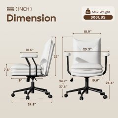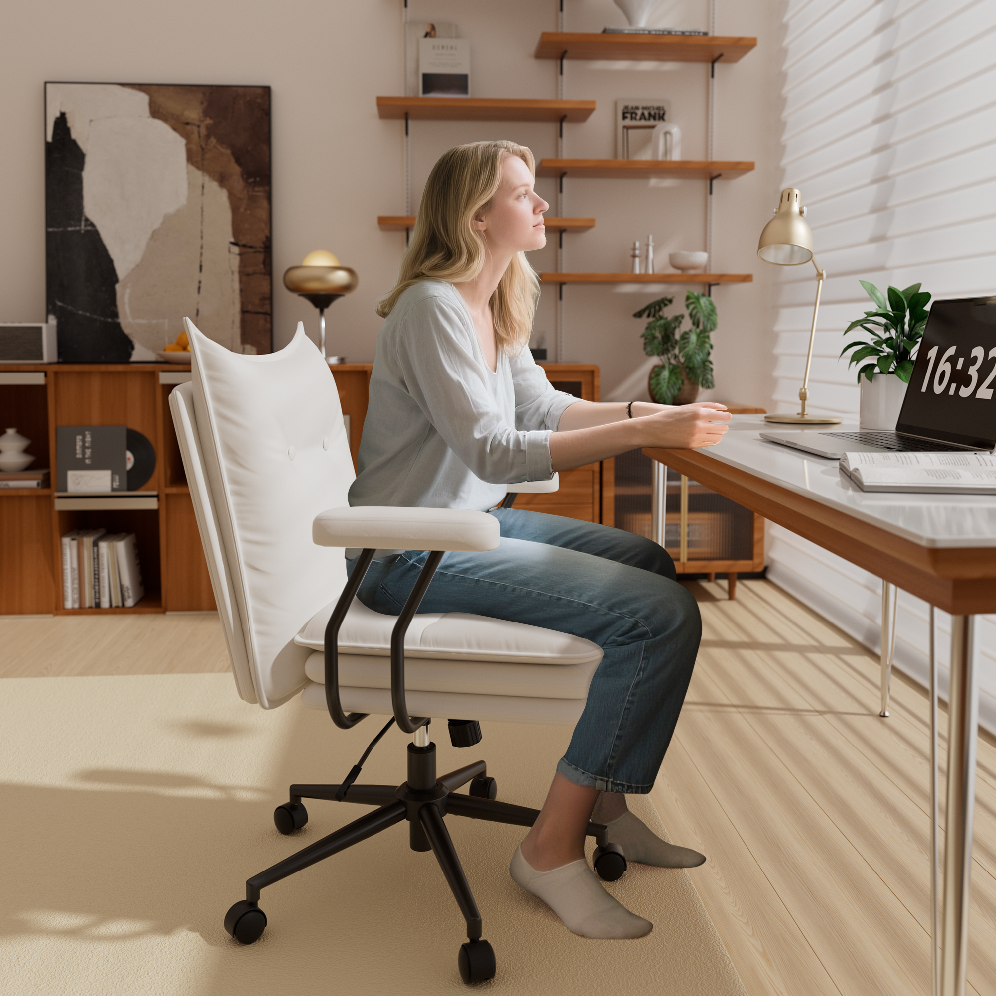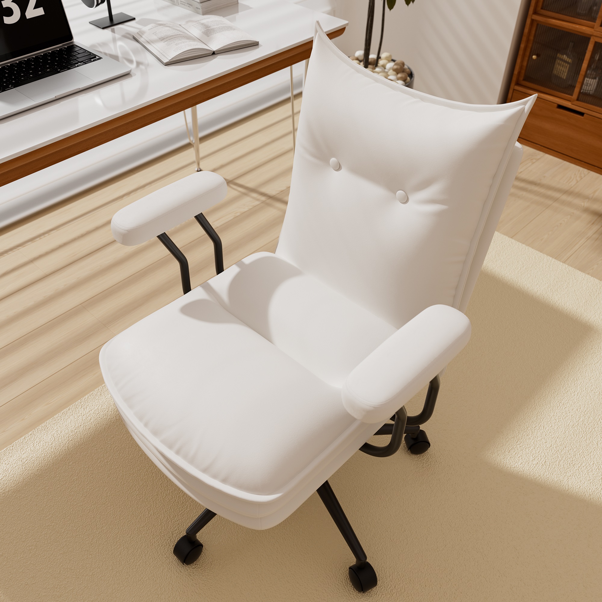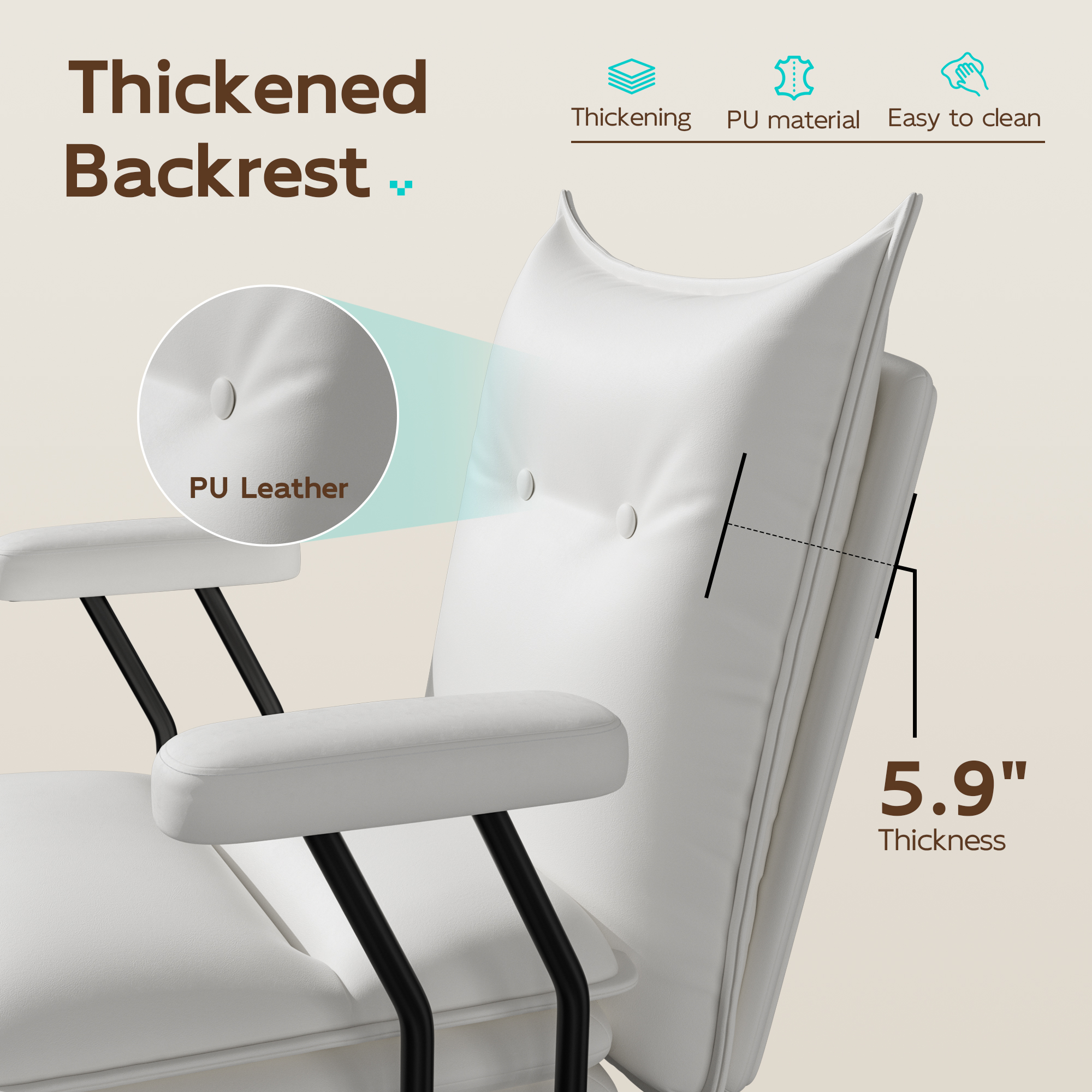 “iooHug Ergonomic White Office Chair, PU Leather Desk Chair with Thick Cushioned Seat, Mid Back Swivel Office Chair for Home Office & Study, Adjustable Height, 300 LBS”