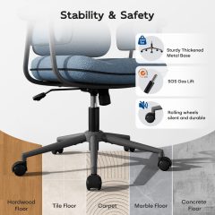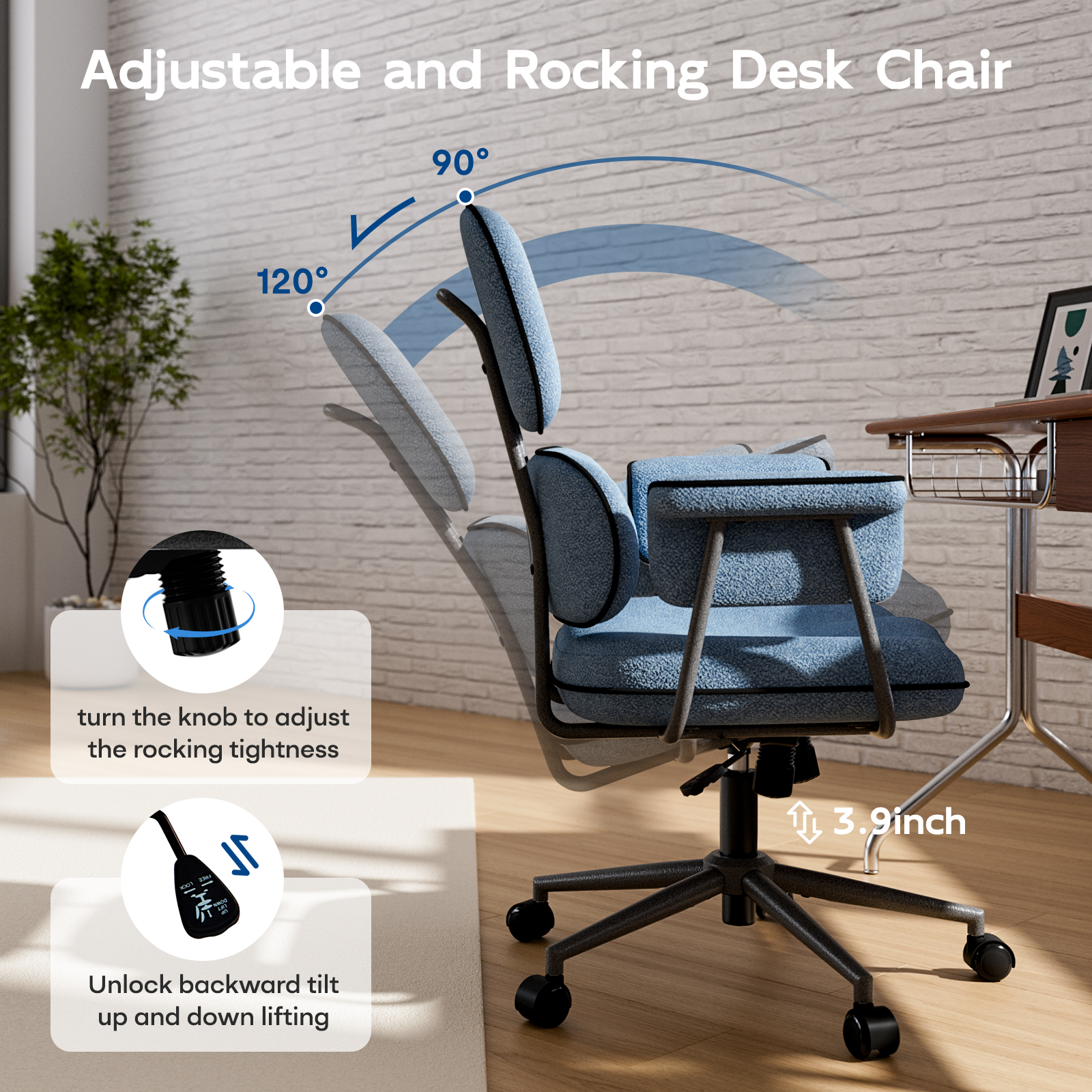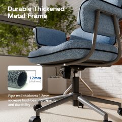 iooHug Blue Ergonomic Office Chair with Memory Foam Seat, Granular Linen Fabric Desk Chair with Wide Armrests, Mid Century Modern Home Office Computer Chair, 400 lbs