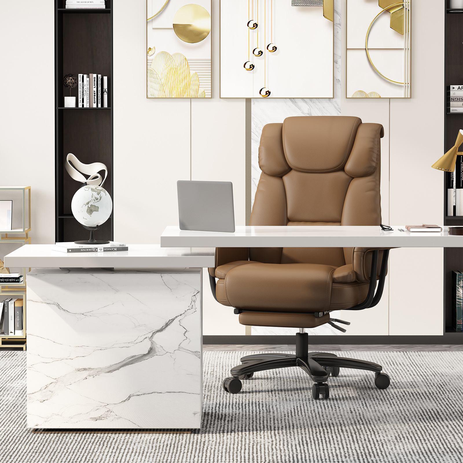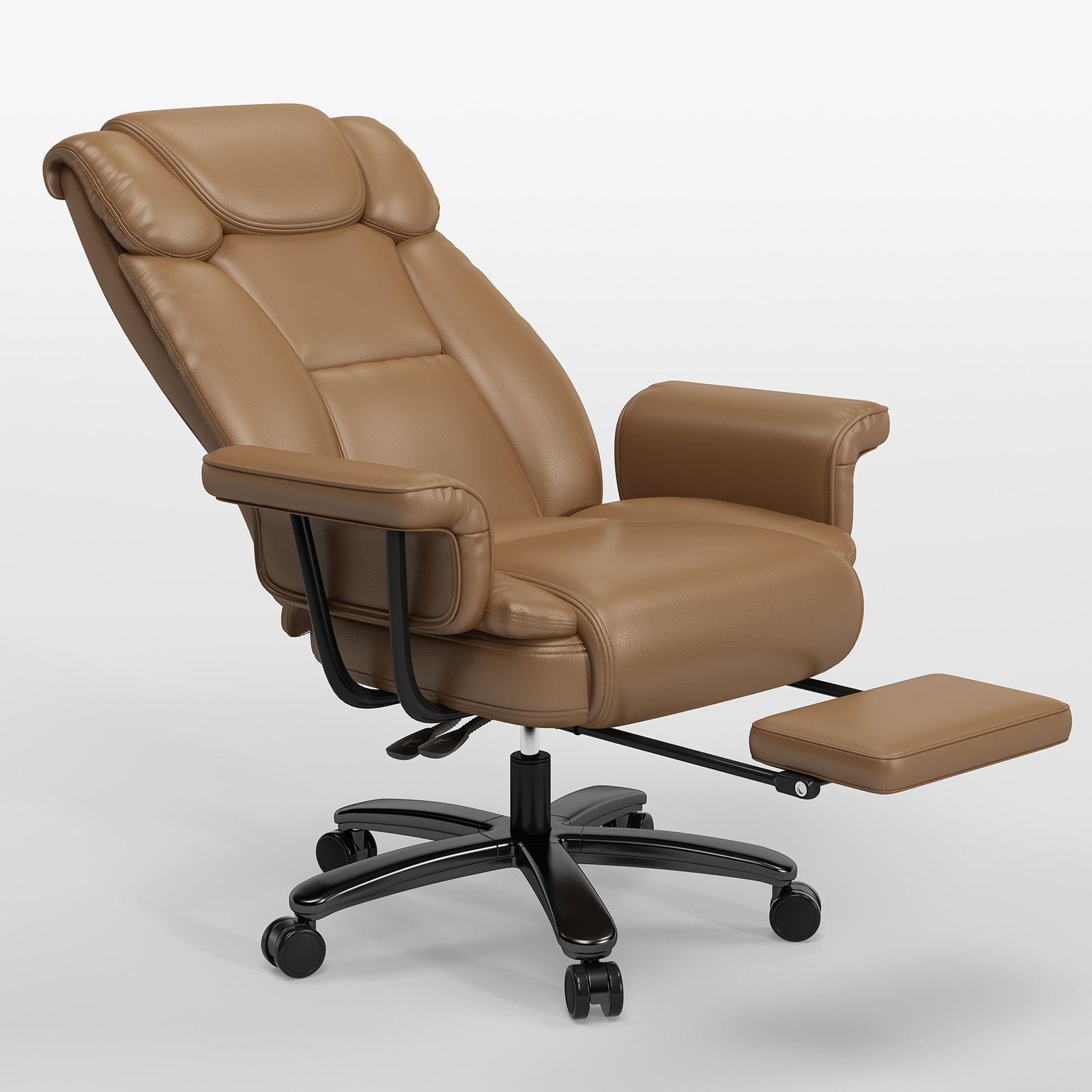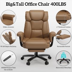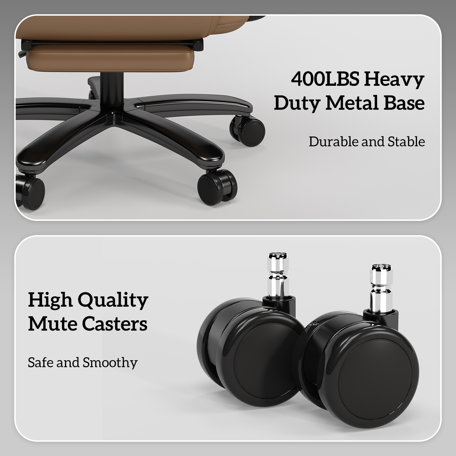 iooHug Big and Tall Office Chair with Footrest, Ergonomic Desk Chair 400 LBS, High Back Reclining Office Chair, Executive Computer Chair for Home Office, Brown