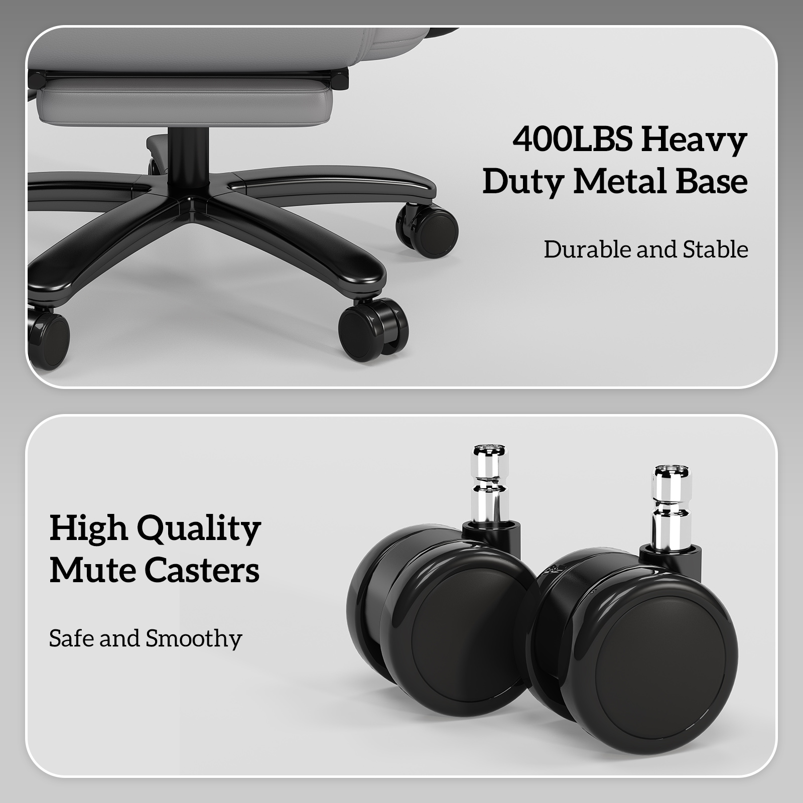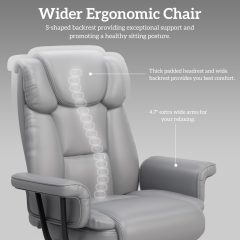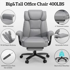 iooHug Big and Tall Office Chair with Footrest, Ergonomic Desk Chair 400 LBS, High Back Reclining Office Chair, Executive Computer Chair for Home Office, Gray