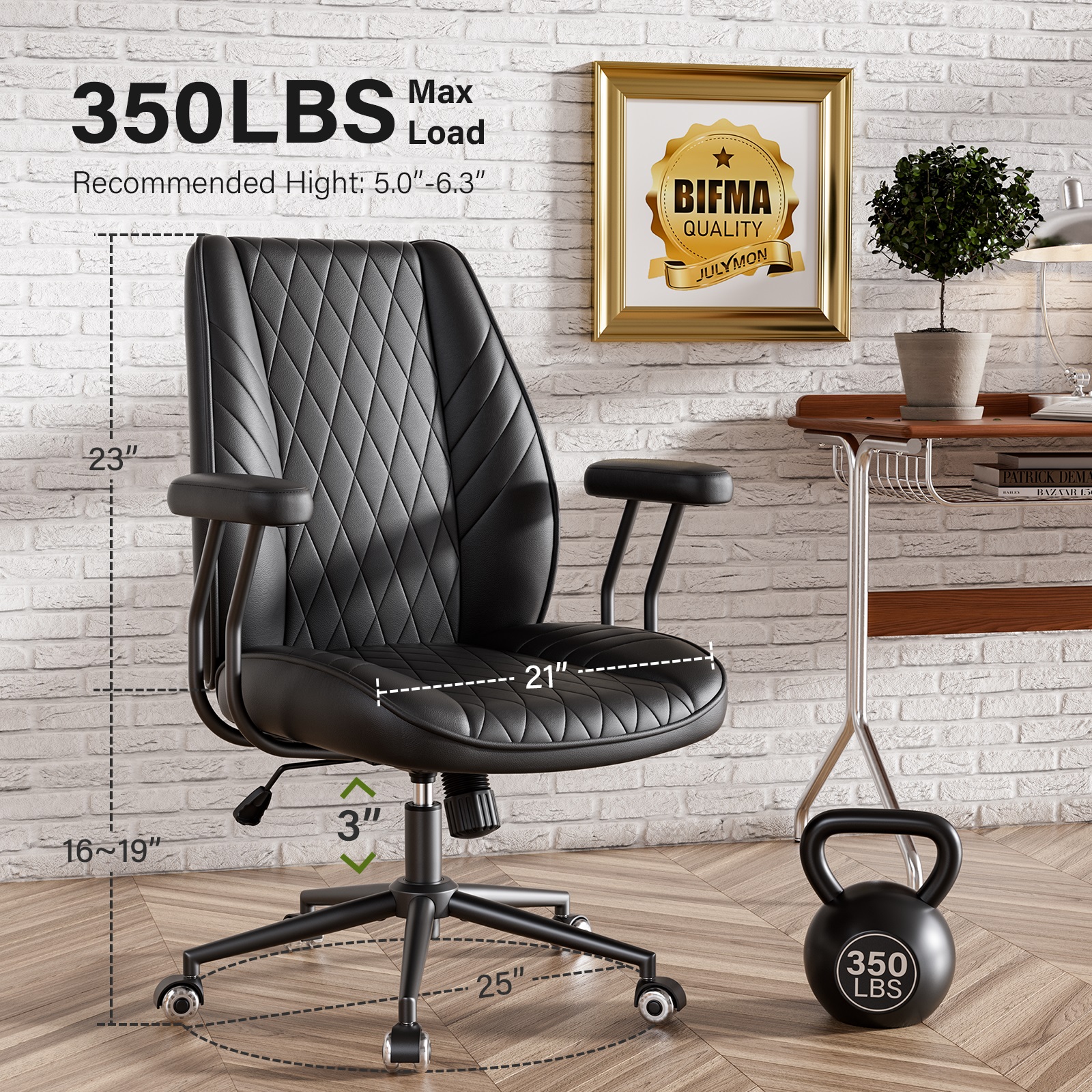 iooHug Vintage PU Leather Office Chair, Ergonomic Desk Chair with Lumbar Support, Adjustable Height, Swivel Rolling Computer Chair for Home Office,Black”