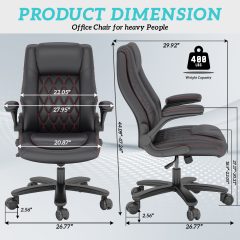 iooHug executive office chair features ergonomic high back, thick padding and 360° swivel. Durable PU leather with flip-up armrests and lumbar support. Smooth rubber casters protect floors, sturdy metal base supports up to 400 lbs. Ideal for long hours, improves posture and enhances productivity.